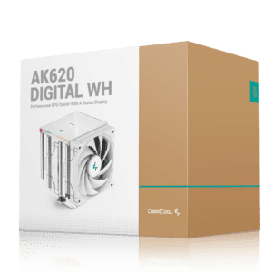 Deepcool AK620 Digital WH High Performance With Status Display CPU Cooler, Dual-Tower Design, 2x 120mm FDB Fans, 6 Copper Heat Pipes, 260W TDP, White