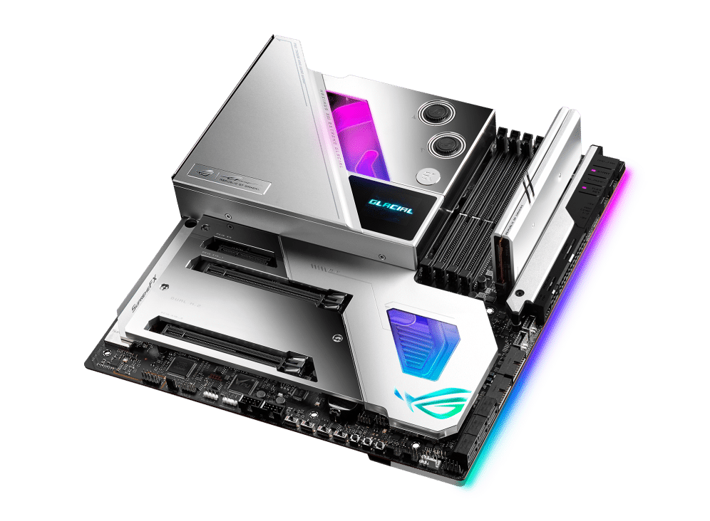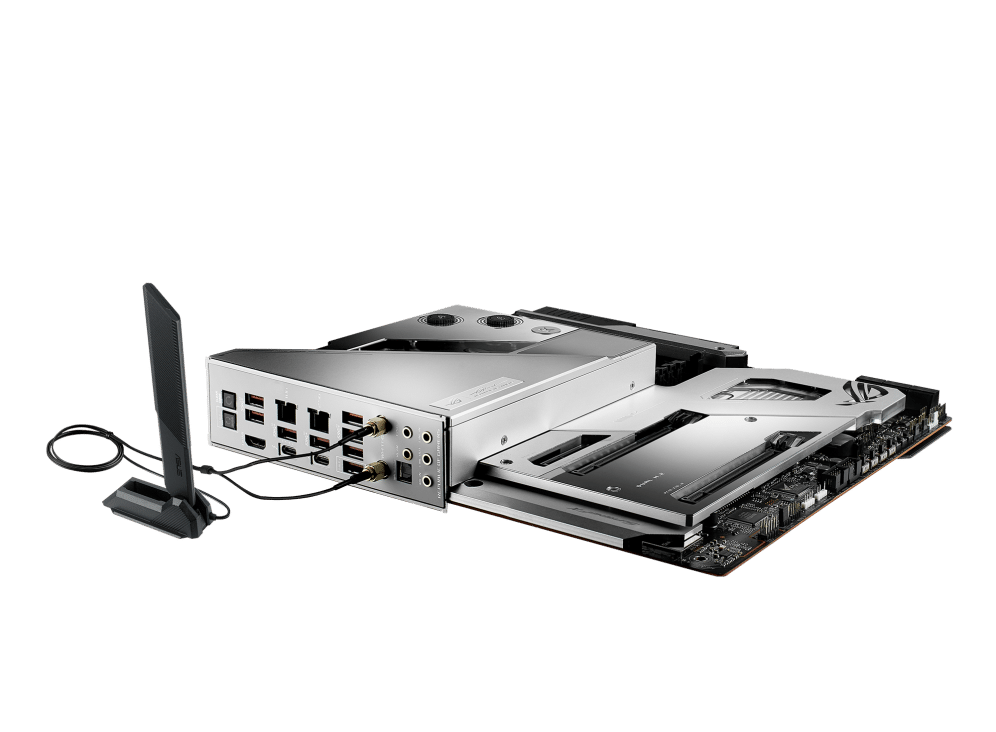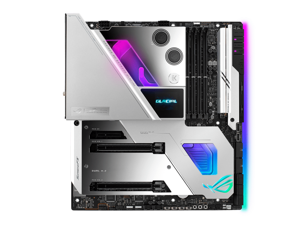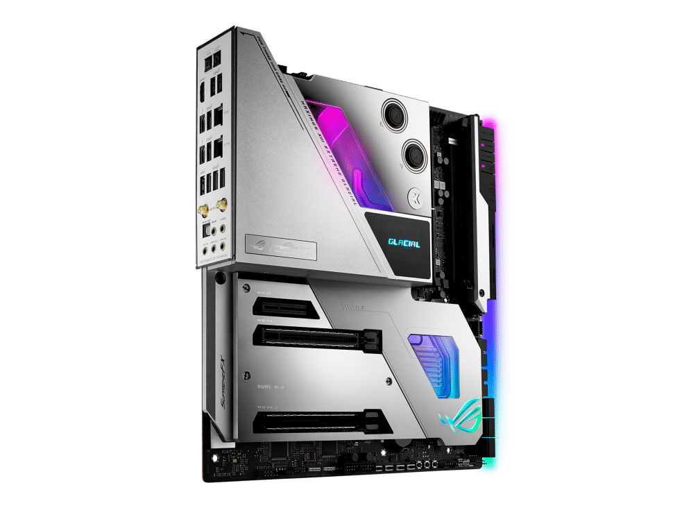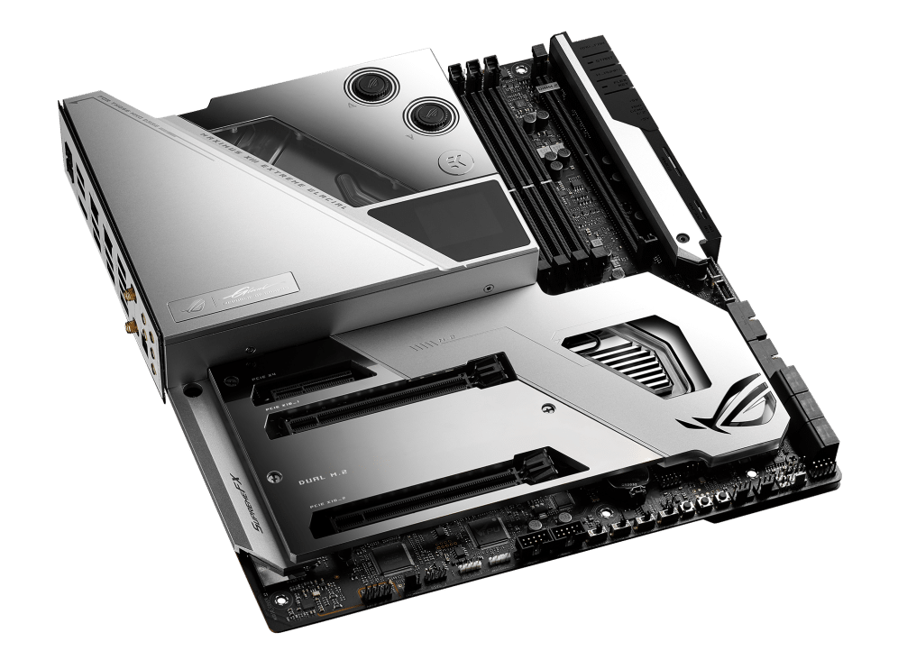 - Optimized Thermal Design: Integrated EK Ultrablock that cools VRM, CPU and PCH; high-conductivity thermal pads, five M.2 heatsinks with embedded backplates and ROG Water-Cooling Zone