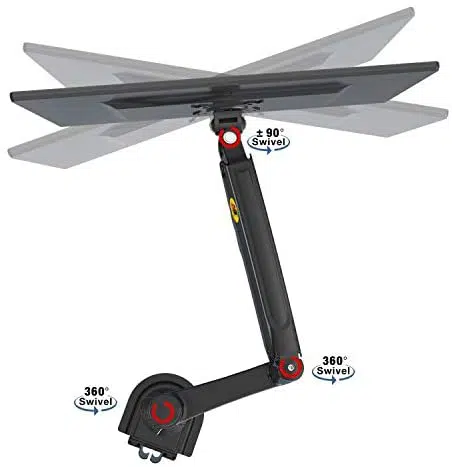 - Customize your working condition, Built-in with ultra-precision gas-strut, Allows +85° to -30° screen tilt adjustment, 360° rotation for landscape or portrait mode; Upright lift 9.8" (250mm) and +90° to -90° degrees swivel, Hold your monitors with an unparalleled range of motion.