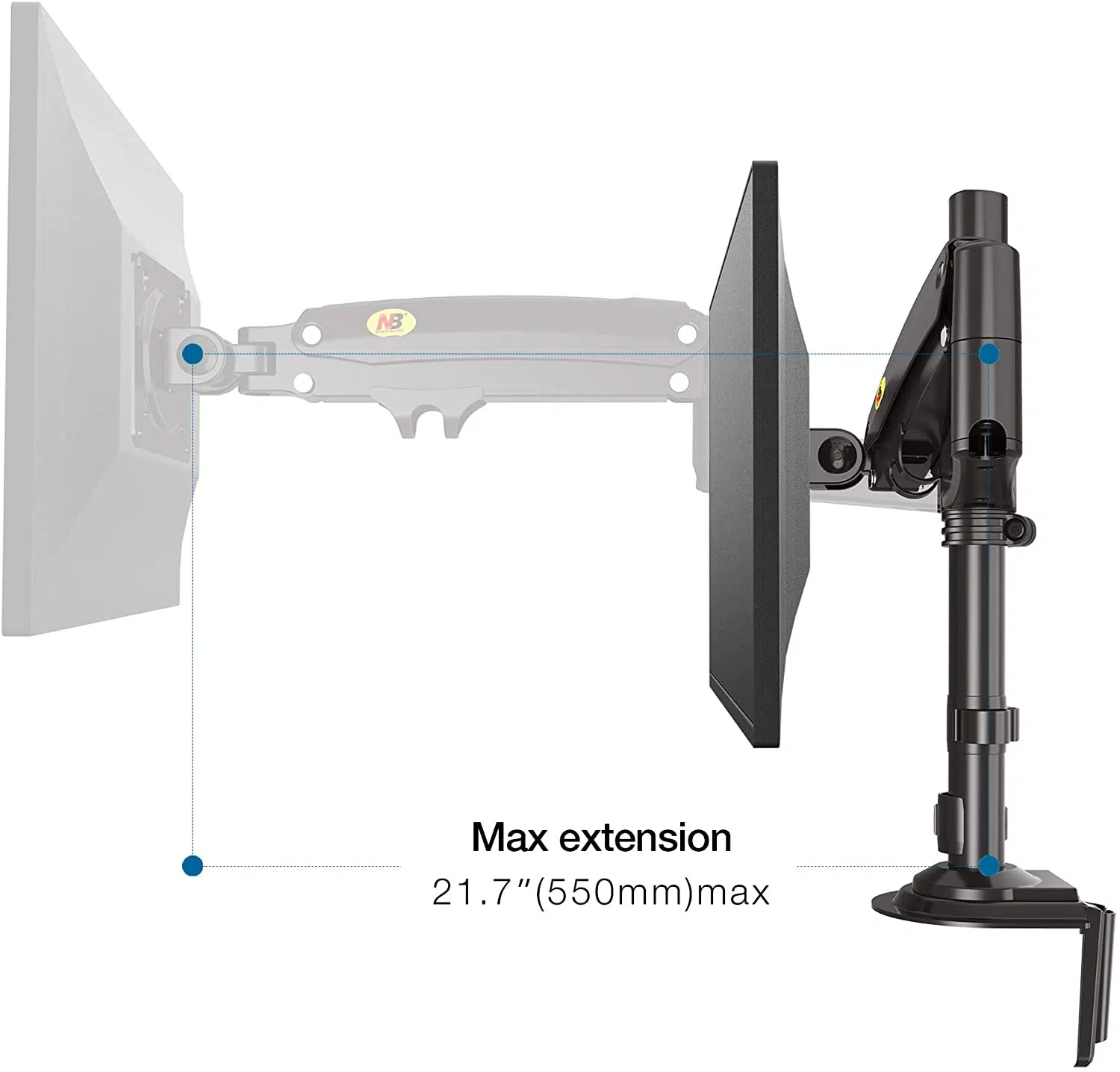NB North Bayou H100 Monitor Desk Mount Long Arm for 22"-35" Monitors from 3 to 12KG Ultra Wide Full Motion Swivel Height Adjustable